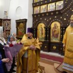 Его Преосвященству сослужили секретарь епархиального управления, настоятель храма иерей Николай Бильчук, клирик храма иерей Андрей Голощапов, клирик Свято-Троицкого кафедрального собора г. Балаково диакон Тимофей Улямаев, клирики храма диакон Михаил Дутка и диакон Димитрий Белостропов.