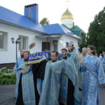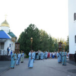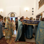 На утрени, после великого славословия, был совершён крестный ход вокруг храма с изнесением плащаницы с изображением Успения Пресвятой Богородицы.