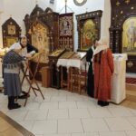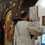 Ночную Литургию совершил клирик храма, священник Роман Морозов в сослужении диакона Димитрия Белостропова, позднюю – настоятель храма иерей Николай Бильчук. Ему сослужил диакон Димитрий Белостропов.