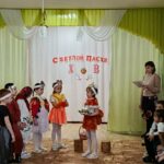 Матушка Татьяна рассказала детям о Евангельских событиях, предшествующих Воскресению Христову. Вспомнили с ребятами символы праздника, посмотрели тематический фильм, играли-катали яйца. Дети подготовительной группы вместе с педагогами подготовили Пасхальный спектакль, пели песни, читали стихи.