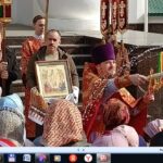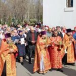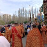 По окончании Литургии под пасхальное пение был совершен праздничный крестный ход вокруг храма.