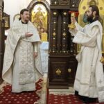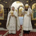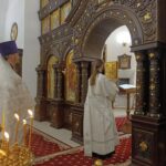 Раннюю Литургию совершил клирик храма священник Александр Фролов, позднюю – настоятель храма иерей Николай Бильчук в сослужении клириков храма священника Андрея Голощапова и диакона Михаила Дутки.