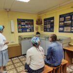 Гости посетили музей воскресной школы, часть экспозиции которого посвящена памяти Чагринского батюшки. Директор школы Валентина Константиновна Муратова провела экскурсию по музею и рассказала об Александровских чтениях, ежегодно проводимых при воскресной школе и посвященных памяти святого.